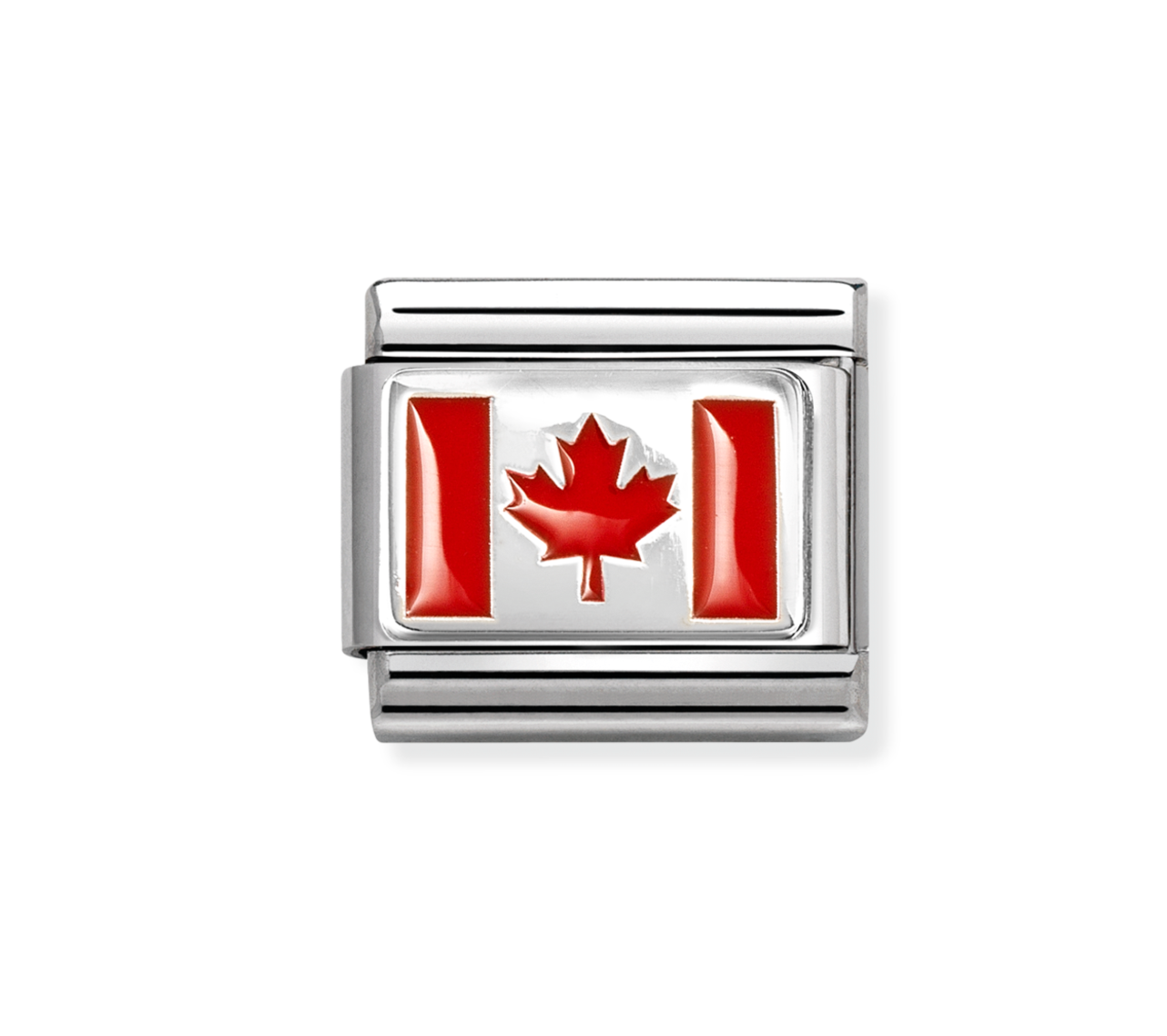 Canada Flag in Enamel in hypoallergenic Stainless Steel, 925 Sterling Silver and enamel. Fits Classic Composable® bracelets. Made in Italy.