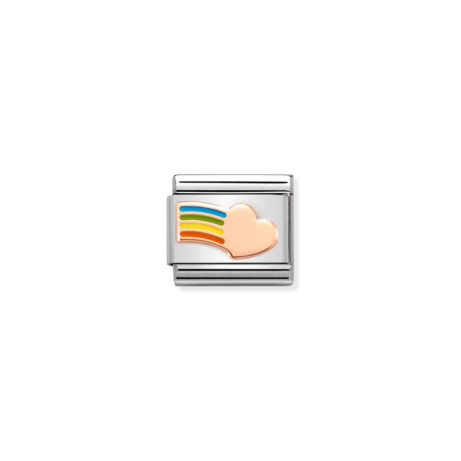 Rainbow with Heart in hypoallergenic Stainless Steel, Rose Gold 9kt and enamel. Fits Classic Composable® bracelets. Made in Italy.