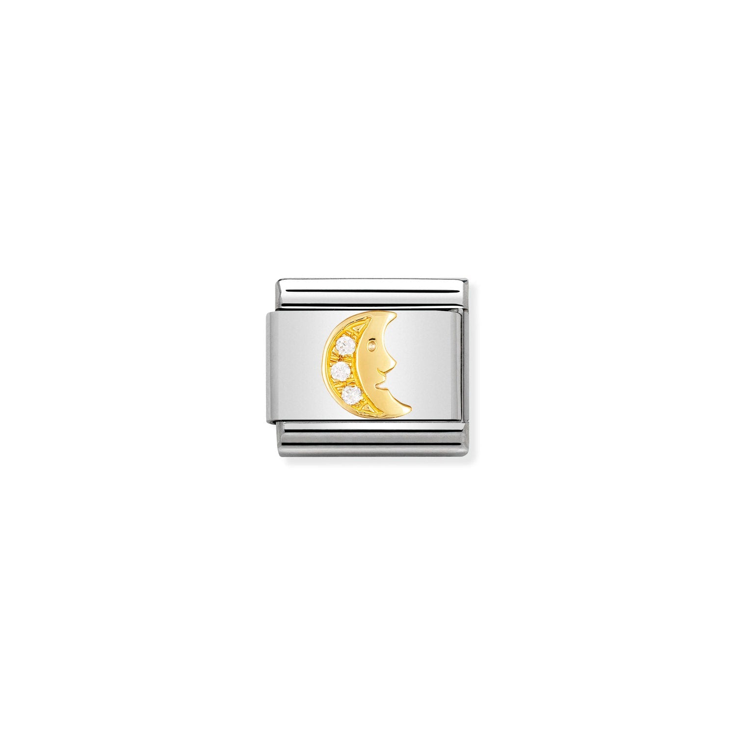 White Moon with Stones in hypoallergenic Stainless Steel, Gold 18 kt and Cubic Zirconia. Fits Classic Composable® bracelets. Made in Italy.