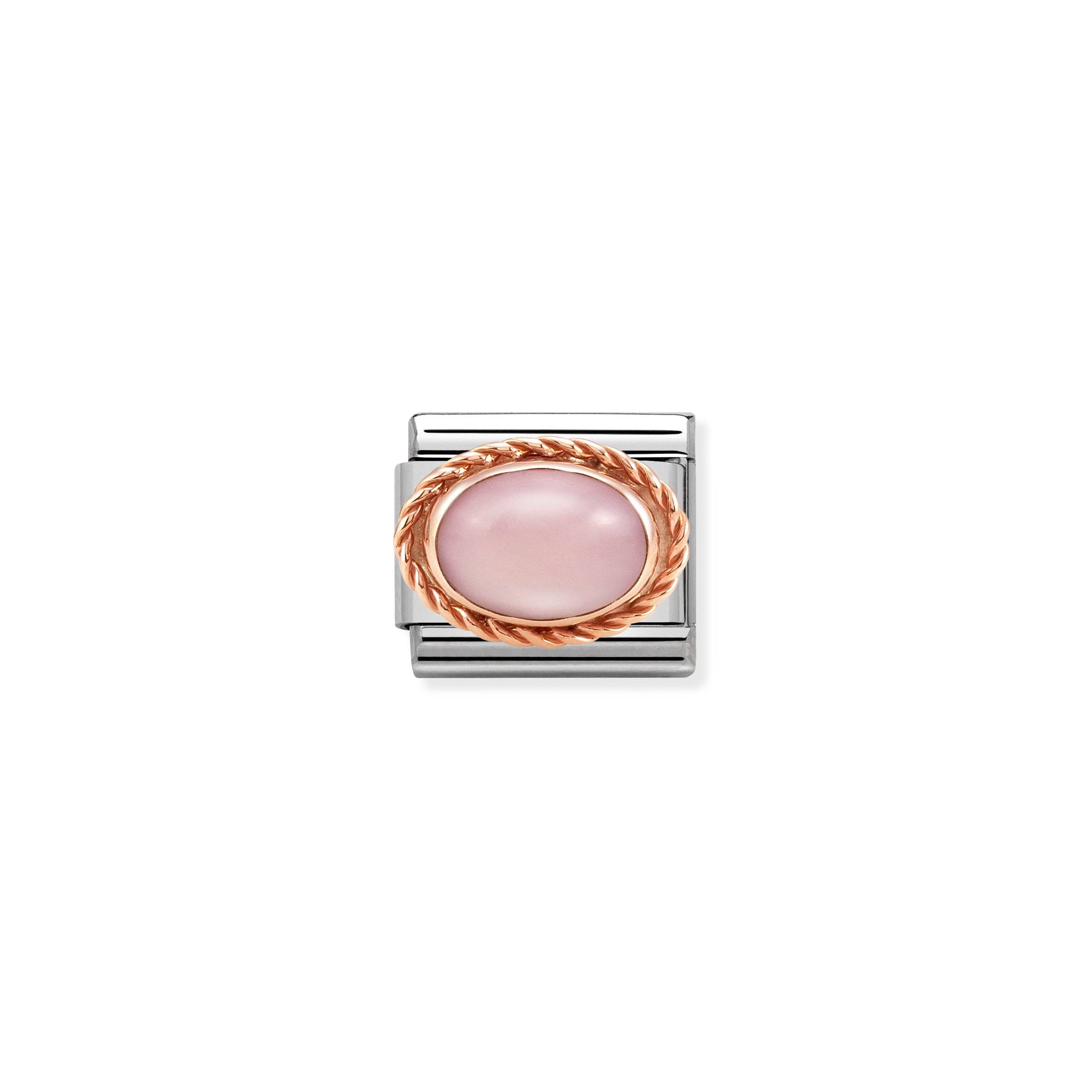 Composable® Link Charm with Pink Opal in Rose Gold Setting. Link is made with hypoallergenic Stainless Steel, Rose Gold 9kt and natural stones. Fits Classic Composable® bracelets. Made in Italy.